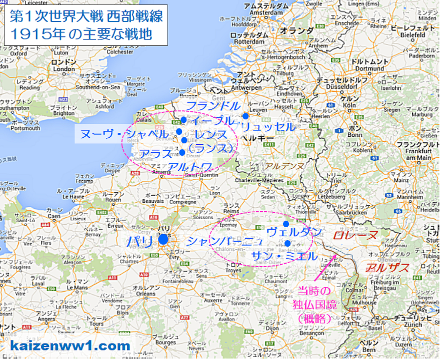 クリスマスまでには終わっていると皆が期待した戦争は、年を越して1915年になりました。この年の戦況のうち、まずは西部戦線の状況について、確認していきたいと思います。